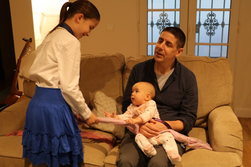 Where we were greeted by three recently career-inspired kids, recognizable only by their unremitting energy. Who else would be amped to role play the minute we got home from 24 hours of travel? Must be ours.