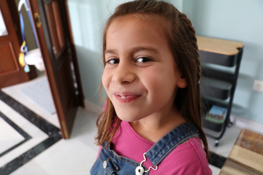 We needed to take her rollerblading the week before when the dangler turned gray, having clung on far too long.