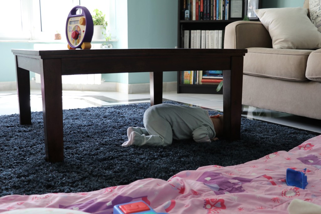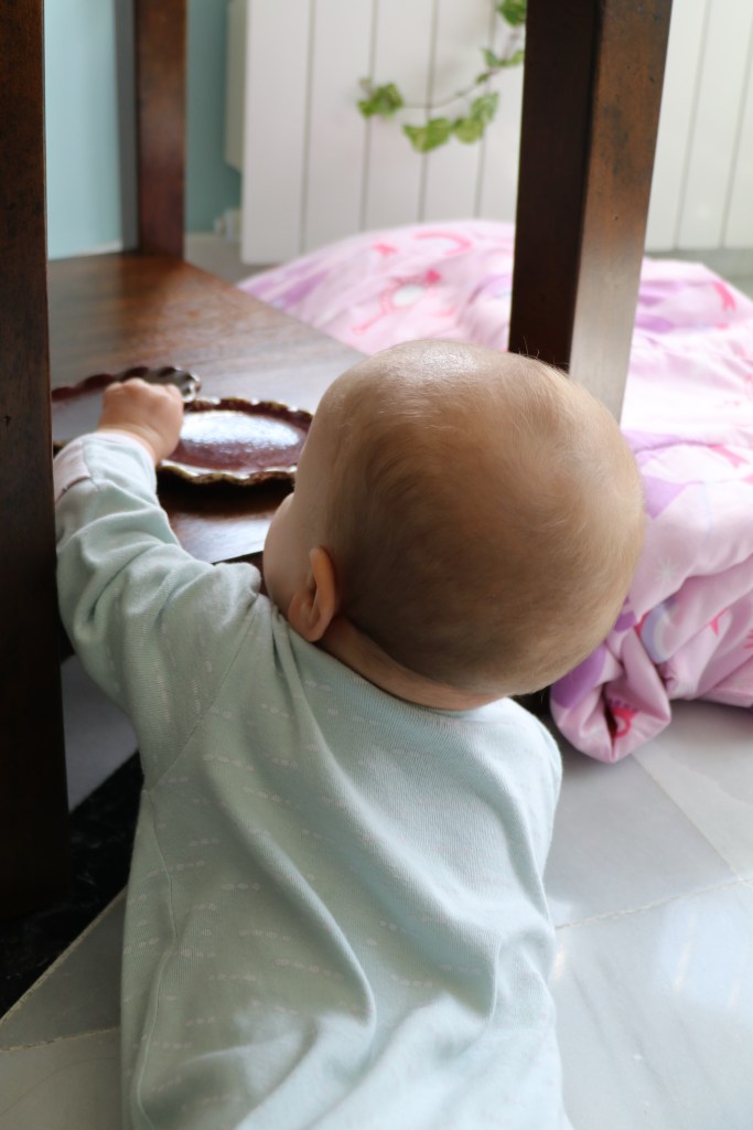 She knows she’s scooting towards a forbidden target. See how she plays dead when caught?