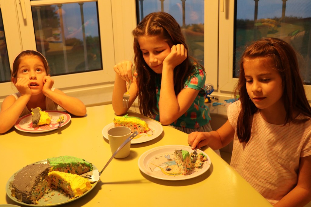 I meant to remember the frosting color on the baby’s section so we wouldn’t be “forced” into eating through all of it…