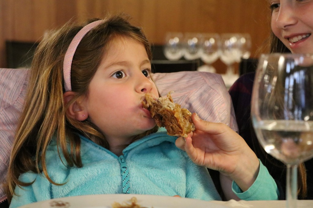 Only our teasing of the “suckling pig,” caught their attention. We assumed it would go down as quickly and confidently as the chuleton… until we actually Googled the meaning. Our three little pigs… no matter their hunger level, would not possibly want to eat piglets. So we let them in on our discover gently, long before placing our lunch order. Revulsion, horror, heartbreak all registered simultaneously. Five minutes pass and Jane announces, “I’d still like to try it.”