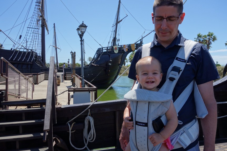No, Rose did not choose to party in Huelva where Columbus launched and ship replicas are on display, but it’s along the route so we stretched our highway legs and had a look around.