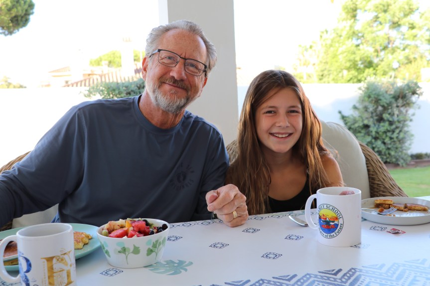 Meanwhile, Lucy and I enjoyed our final quiet breakfast together for a few months (the silence broken only by the sound of her shoveling it in),